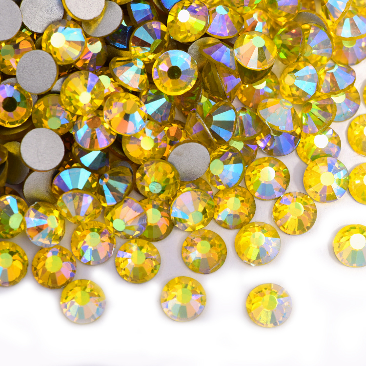 Item:Citrine AB SS3-SS30 Silver Base Crystal AB Flat Back Strass Crystal Non Hot Fix Rhinestone For Garment Decoration